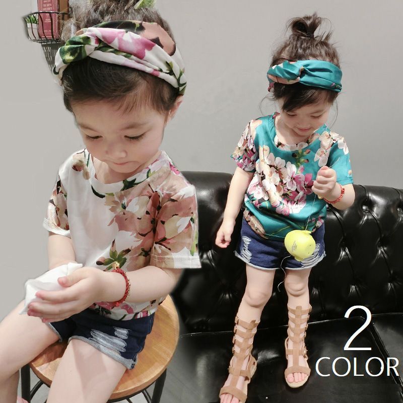 送料無料半袖ブラウス 子供服 キッズ服 女の子 トップス 半袖 ラウンドネック 後ろボタン 花柄 花 フラワー 薄手 可愛い かわいい カッコイイ かっこいい 格好いい クール 大人っぽい 春 夏 子供 こども キッズ ジュニア 女児 ホワイト グリーン